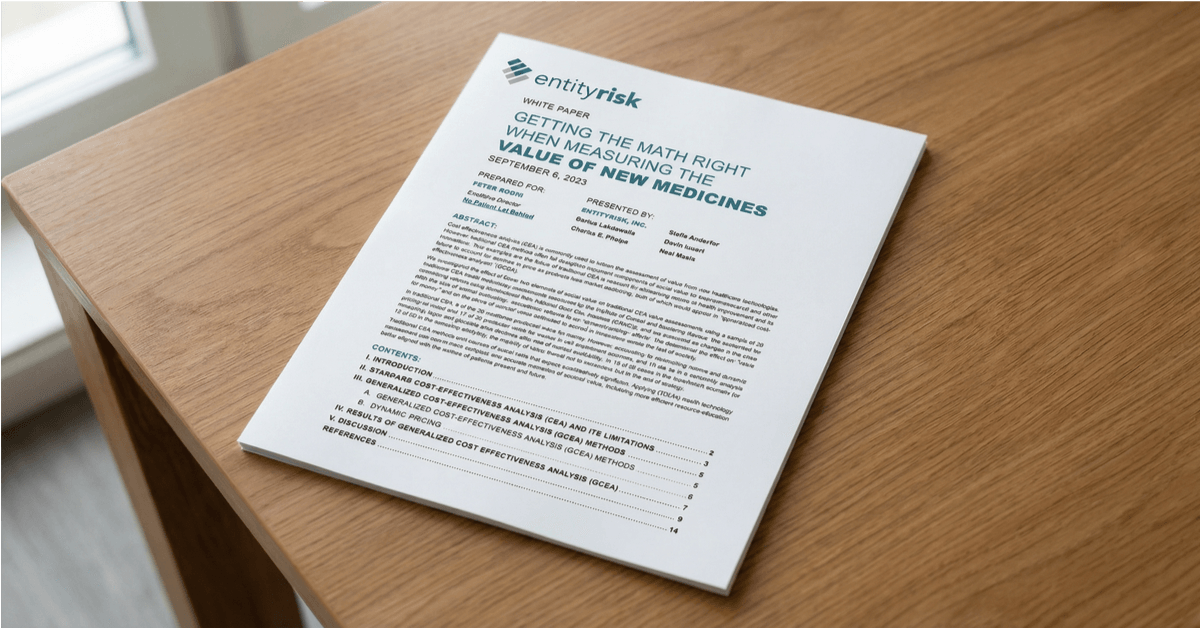 EntityRisk integrates globally renowned health economics and policy expertise with PROVEN™, our advanced modeling software, to predict health outcomes, identify maximum value-based pricing, and substantiate evidence-generation investments, allowing you to better establish and defend product value.
